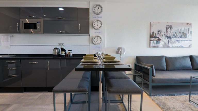 Das Dassine View - Luxe - Agadir - 5 Px bietet moderne Übernachtungsmöglichkeiten mit kostenlosem WLAN, Klimaanlage, einer Terrasse sowie Wassersportmöglichkeiten.