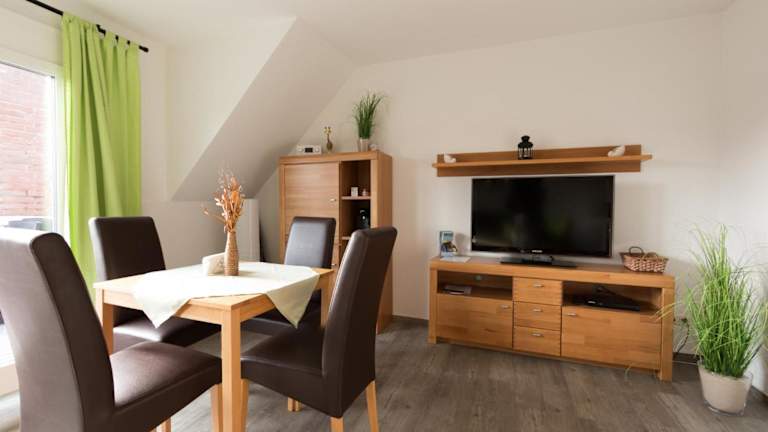 Dat Ferienhus Norddeich Ferienwohnung 6 bietet eine entspannte Unterkunft mit Gartenblick. Die Ferienwohnung ist vollständig ausgestattet und gewährt ihren Gästen einen Balkon sowie kostenlosen Privatparkplatz und WLAN.