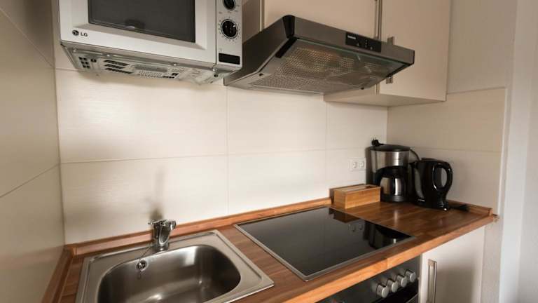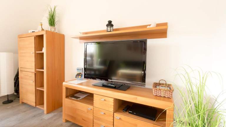 Die Ferienwohnung umfasst 1 Schlafzimmer und ein Wohnzimmer. Die voll ausgestattete Küche ist mit Kühlschrank und Kaffeemaschine ausgestattet. Ein Badezimmer mit Dusche und Haartrockner ist ebenfalls vorhanden. Zudem stehen ein TV und ein Blu-ray-Player zur Verfügung.