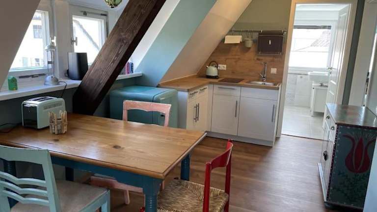 Dat Smucke Reethus Dachgeschoss bietet Übernachtungsmöglichkeiten im Dachgeschoss mit einer Gartenterrasse und verschiedenen Wassersportmöglichkeiten. Diese Ferienwohnung wird von einem privaten Gastgeber geführt und ist als Nichtraucherunterkunft konzipiert. Feiern wie Junggesellenabschiede sind in dieser Unterkunft nicht gestattet und das Mindestalter für den Check-in liegt bei 18 Jahren.