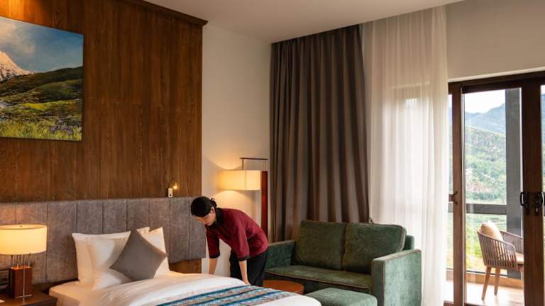 Das Hotel Dawa at Hilltop by Heeton befindet sich in der Nähe des Paro International Airport in einer malerischen Umgebung, die von einem Garten umgeben ist und beeindruckende Ausblicke auf die Berge bietet.