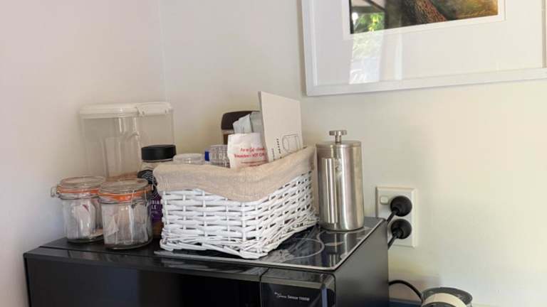 Die Unterkunft bietet eine voll ausgestattete Küchenzeile, die mit einem Kühlschrank und einem Wasserkocher ausgestattet ist.