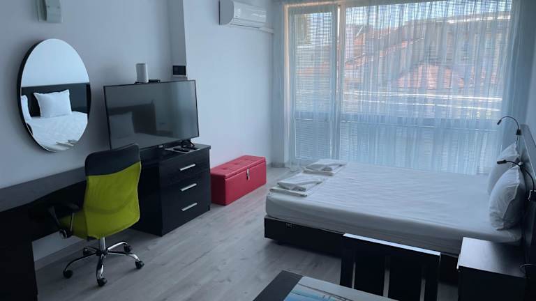 Das Hotel Day Dream befindet sich in Burgas, in unmittelbarer Nähe zum Zentralstrand Sarafovo, der nur 700 Meter entfernt ist. Der Strand Atlantis liegt ebenfalls in Reichweite, etwa 800 Meter entfernt. Der Flughafen Burgas ist nur 1 Kilometer entfernt, was eine bequeme Anreise ermöglicht. In der Umgebung sind Sehenswürdigkeiten wie das Luftfahrtmuseum (1,4 km) und die Burgas Saltworks (7,4 km) zu finden.