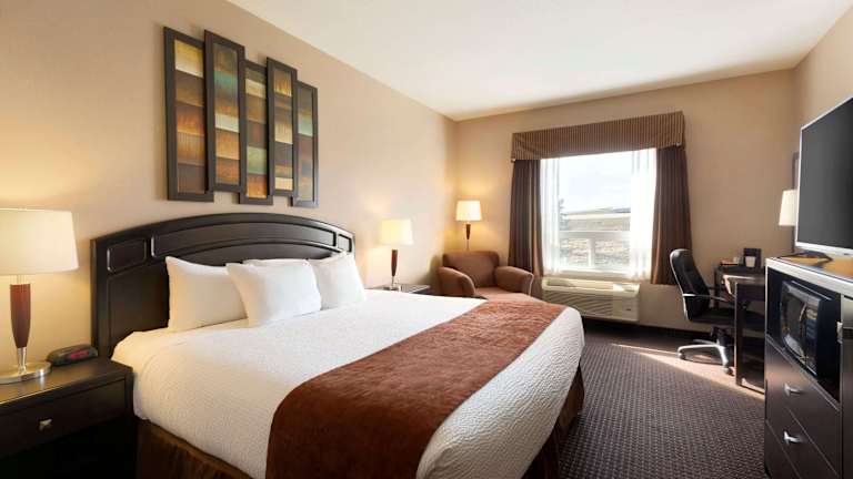 Die klimatisierten Zimmer im Days Inn by Wyndham Innisfail sind komfortabel eingerichtet und bieten Annehmlichkeiten wie eine Mikrowelle, einen Kühlschrank und einen Flachbild-TV. WLAN ist in allen Bereichen des Hotels kostenfrei verfügbar. Das eigene Bad ist mit einer Badewanne oder einer Dusche und einem Haartrockner ausgestattet.