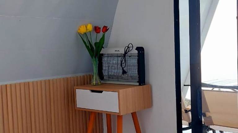 Die Zelt-Lodge ist ausgestattet mit einem Flachbild-TV, was den Komfort während des Aufenthalts erhöht.