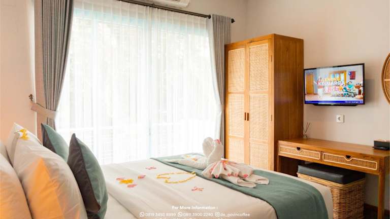 Das de'Govin Hotel bietet komfortable Nichtraucherzimmer mit moderner Ausstattung. Jedes Zimmer verfügt über eine Klimaanlage und einen Flachbild-TV. Ein Wasserkocher steht ebenfalls zur Verfügung.