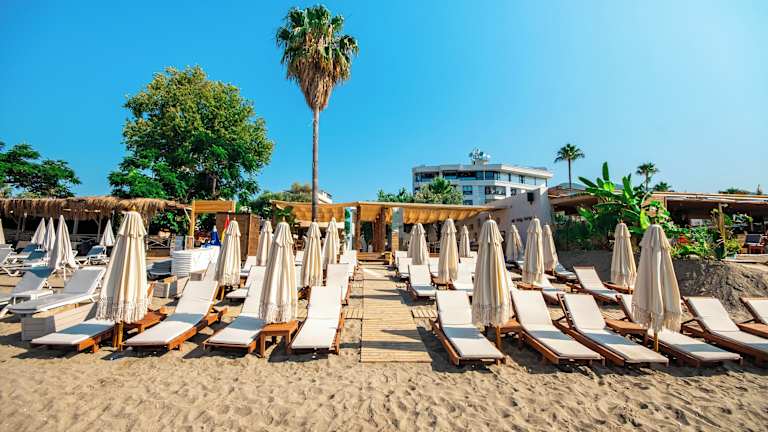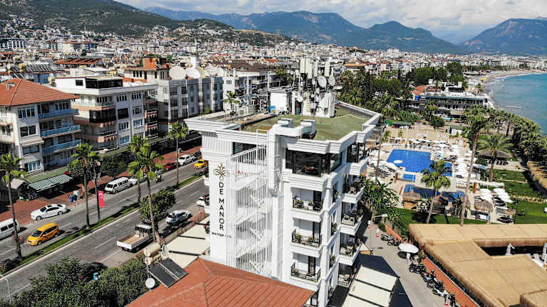 Das De'Manor Boutique Hotel liegt zentral in Alanya, nur ca. 200 m vom Keykubat Beach entfernt. Der Hafen ist in etwa 500 m zu erreichen und der Rote Turm befindet sich ca. 1,3 km entfernt. Zu den weiteren Sehenswürdigkeiten in der Umgebung gehören das Archäologische Museum und der Aquapark, die sich in einem Abstand von ungefähr 1,8 km befinden. Das Hotel befindet sich in einer lebhaften Lage mit zahlreichen Restaurants und Geschäften in der Nähe. Der Flughafen Antalya ist ca. 130 km entfernt, während der Flughafen Gazipasa in einer Entfernung von ca. 45 km liegt.