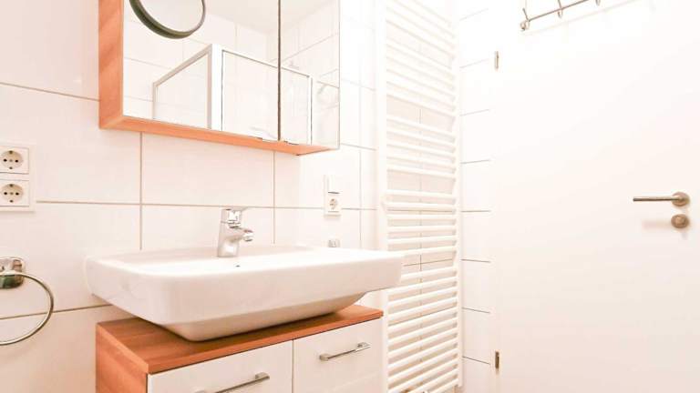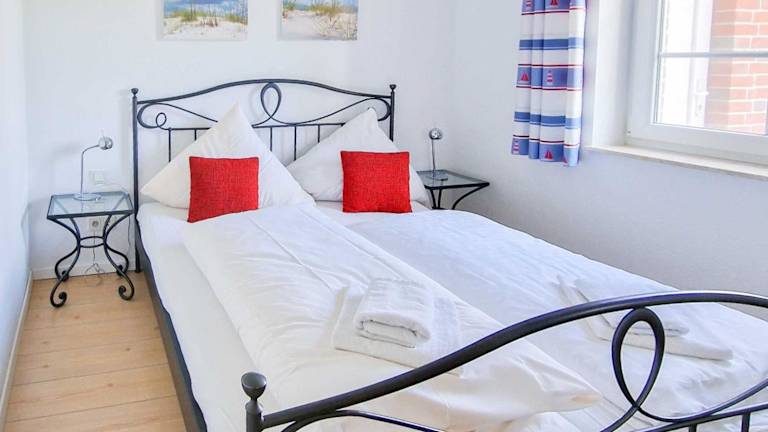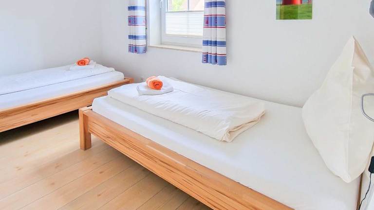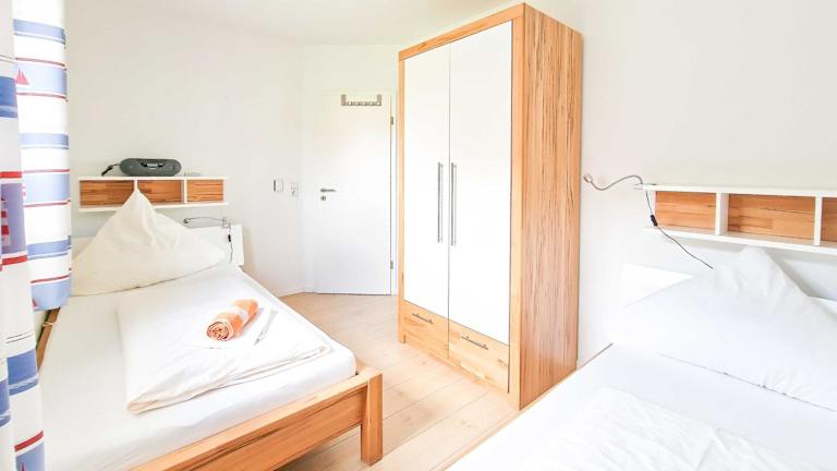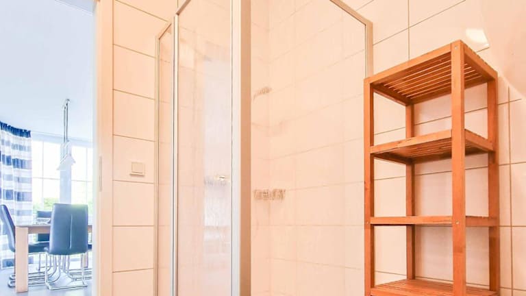 Die Ferienwohnung umfasst zwei Schlafzimmer und eine Küchenzeile, die mit einem Kühlschrank und einem Geschirrspüler ausgestattet ist. Ein Flachbild-TV und ein Sitzbereich sind ebenfalls vorhanden. Das Bad ist mit einer Dusche ausgestattet. Handtücher und Bettwäsche werden bereitgestellt.