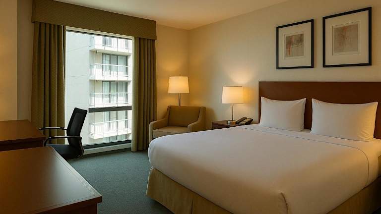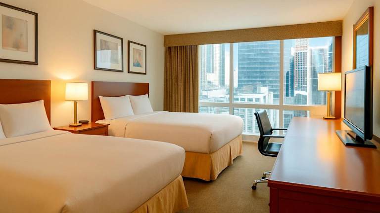 Die Zimmer im Hotel Holiday Inn Manhattan View sind komfortabel eingerichtet und verfügen über eine Klimaanlage und individuell regulierbare Heizung. Ein Balkon lädt zum Verweilen ein. Die Zimmer sind mit einem Doppelbett, einem Queensize-Bett oder einem Kingsize-Bett ausgestattet. Zur Standardausstattung gehören eine Minibar, ein Kühlschrank, eine Tee-/Kaffeemaschine und ein Bügelset. Ein Telefon, ein TV-Gerät, ein Radio, ein Wecker und WLAN sind ebenfalls vorhanden. Das Badezimmer verfügt über eine Dusche und eine Badewanne sowie einen Haartrockner. Nichtraucherzimmer sind verfügbar.