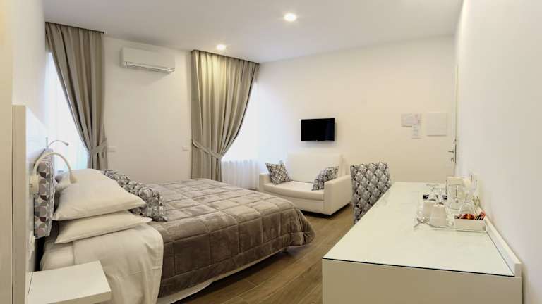 Das Dea Guest House befindet sich am Corso Italia, einer der Hauptstraßen von Sorrento. Es liegt nur 500 m von der Piazza Tasso entfernt, dem Herzen der Stadt. Hier finden Sie zahlreiche Restaurants, Bars und Geschäfte. Das Museo Correale, ein Museum mit einer beeindruckenden Sammlung von Kunstwerken, ist nur 10 Gehminuten entfernt. Der Hafen von Sorrento, von dem aus Sie mit der Fähre nach Capri und Ischia fahren können, ist ebenfalls nur 600 m entfernt. Der internationale Flughafen Neapel ist etwa 29 km entfernt und kann bequem mit dem Auto oder öffentlichen Verkehrsmitteln erreicht werden.