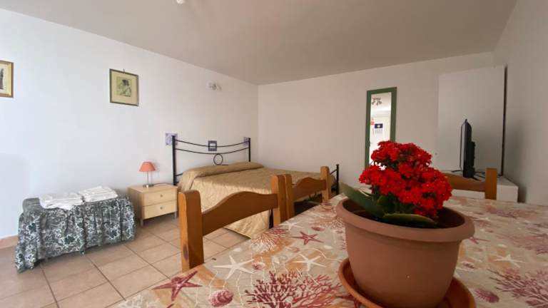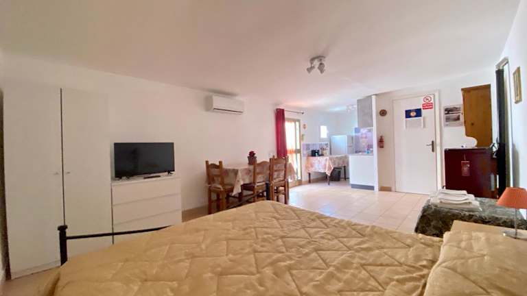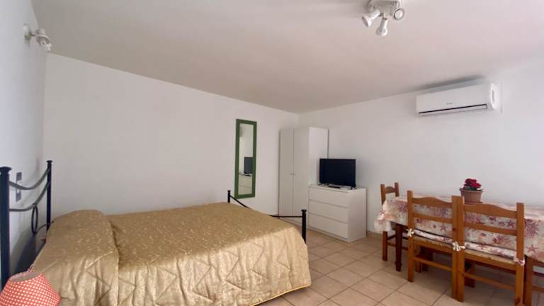 Das Apartment im Hotel DeA Studio verfügt über ein gemütliches Schlafzimmer und eine praktische Küchenzeile mit Backofen und Mikrowelle. Das Apartment ist klimatisiert und bietet zudem einen Flachbild-TV. Der Gartenblick aus dem Apartment rundet das Gesamtbild ab und sorgt für eine angenehme Atmosphäre.