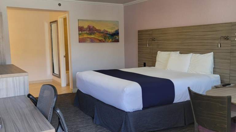 Die klimatisierten Zimmer im Death Valley Inn & RV Park sind modern und komfortabel eingerichtet. Jedes Zimmer verfügt über einen Flachbild-TV, einen Kühlschrank, eine Mikrowelle und eine Kaffeemaschine. Das private Badezimmer ist mit einer Dusche und einem Haartrockner ausgestattet. Kostenloses WLAN steht den Gästen zur Verfügung.