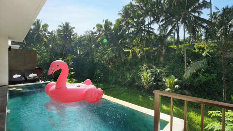 Das Dedary Kriyamaha Ubud in Ubud, Bali, bietet eine luxuriöse Unterkunft in Form von Villen mit eigenem Pool. Das moderne, balinesisch inspirierte Design der Villen und die entspannte Atmosphäre machen dieses Hotel zu einem idealen Rückzugsort für Paare. Genießen Sie die Aussicht auf den Garten oder das Tal, entspannen Sie am Pool oder auf der Terrasse und lassen Sie sich im Spa verwöhnen. Das Hotel bietet auch ein Restaurant und einen atemberaubenden Blick auf die Reisfelder.