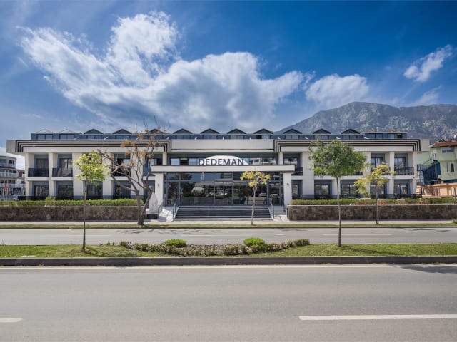 Dedeman Kemer Resort wurde im Februar 2024 von der größten Hotelkette in der Türkei, Dedeman Hotels & International, erworben. Unsere Hotelkette besteht seit über 50 Jahren und entwickelt weiterhin neue Hotels an verschiedenen Orten der Welt. Unsere Hotelkette ist bekannt für ihren qualitativ hochwertigen Service, warme Gastfreundschaft und stammgäste, die immer wieder zu uns zurückkehren. Unser Hotel wurde 2024 einer umfassenden Renovierung durch Dedeman Hotels & International unterzogen und wird ab dem 19. Mai dieses Jahres bereit sein, unsere geschätzten Gäste willkommen zu heißen. Renoviert und umgebaut, hat sich unser Hotel das Ziel gesetzt, seinen Gästen einen qualitativ hochwertigen Service gemäß den hervorragenden Standards der Dedeman Hotels für 12 Monate zu bieten. Standort: Dedeman Kemer Resort liegt am Ufer des tiefblauen Mittelmeers, am Fuße des Taurusgebirges, in zweiter Reihe zum Meer. Dedeman Kemer Resort ist ein Paradies im Herzen von Kemer, in fußläufiger Entfernung zu Geschäften, Basar, Restaurants, Clubs und anderen Unterhaltungsmöglichkeiten. Es ist 38 km vom Stadtzentrum Antalya und 55 km vom Flughafen entfernt. Unser Hotel mit einer Gesamtfläche von 16.000 m² wurde 2024 komplett renoviert. Es bietet renovierte Zimmer und Gemeinschaftsbereiche. Hotelkonzept: Das Hotel arbeitet nach dem ULTRA ALL INCLUSIVE-System. Das System gilt von 07:30 bis 02:00 Uhr. Anzahl der Zimmer: 360 Zimmertypen: • Superior Zimmer • Grand Superior Zimmer • Deluxe Zimmer Luxuriöse Unterkünfte: Wir haben jedes Detail in unseren modernen und komfortablen Zimmern sorgfältig durchdacht. Alles, was Sie für Ihren Komfort und Ihr Wohlbefinden benötigen, finden Sie in Ihren Zimmern. Was erwartet Sie im Dedeman Kemer Resort? • Fehlerfreier Service: Unser freundliches und professionelles Team steht Ihnen während Ihres Urlaubs bei allem zur Seite. • Unvergessliche Erlebnisse: Sie werden eine unvergessliche Zeit an unserem privaten Strand, am Außenpool, im Spa, mit exquisiten Köstlichkeiten, exklusiven Getränken und unterhaltsamen Animationsaktivitäten haben. Unser Garten, der Ihnen mit unserer besonderen Landschaft, die Natur und Architektur verbindet, Ruhe gibt, ist einen Besuch wert. • Reich an Unterhaltung: Sie können Ihren Urlaub in Kemer mit vielen Möglichkeiten zur aktiven Erholung