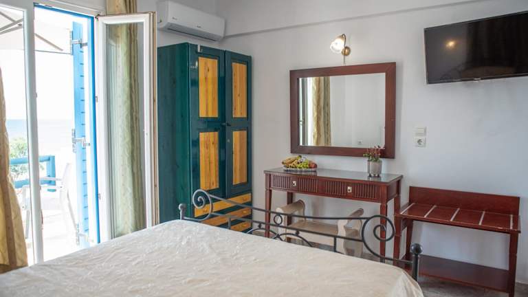 Die Zimmer im Hotel Deep Blue sind klimatisiert und bieten kostenfreies WLAN. Sie sind im traditionellen Stil der Kykladen gestaltet und verfügen über eine gemütliche Atmosphäre. Die Studios sind mit grünem Holzmobiliar und warmen Farben eingerichtet und bieten Zugang zu einem möblierten Balkon. Jedes Zimmer verfügt über eine Küchenzeile mit Kühlschrank und Herdplatten sowie ein eigenes Badezimmer mit Dusche oder Badewanne. Ein TV ist ebenfalls vorhanden.