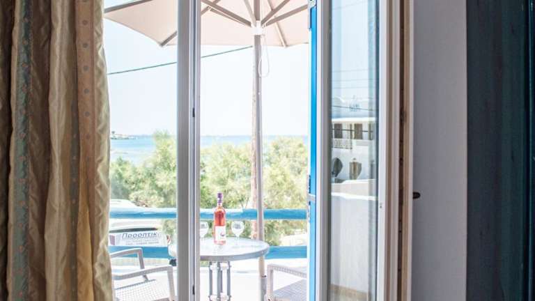 Das Hotel Deep Blue liegt direkt am wunderschönen Sandstrand Agios Prokopios und bietet Ihnen eine herrliche Aussicht auf die Ägäis. In unmittelbarer Nähe finden Sie Restaurants, Clubs und Bars, die für Unterhaltung und kulinarische Genüsse sorgen. Ein kleiner Supermarkt befindet sich nur 20 m entfernt, so dass Sie Ihre Einkäufe bequem erledigen können. Der Hafen von Naxos ist nur 7 km entfernt und die Stadt Naxos erreichen Sie nach 6 km. Der berühmte Strand Agia Anna ist ebenfalls in der Nähe und nur 800 m entfernt. Öffentliche Parkplätze stehen in der Nähe kostenlos zur Verfügung.