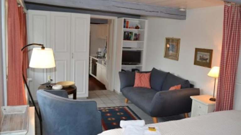 Die Ferienwohnung bietet ein Schlafzimmer, ein modernes Badezimmer mit Dusche sowie eine gut ausgestattete Küche mit Kühlschrank und Geschirrspüler. Zur Ausstattung gehören ein Flachbild-TV und die Möglichkeit, Handtücher und Bettwäsche gegen Aufpreis bereitzustellen.