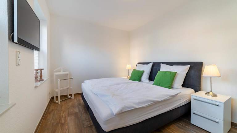 Die Ferienwohnung beinhaltet ein Schlafzimmer sowie einen TV und bietet Zugang zu einer voll ausgestatteten Küche. Diese Küche ist mit einem Kühlschrank und einem Geschirrspüler ausgestattet. Allergikerfreundliche Zimmer sind verfügbar, und es handelt sich um eine Nichtraucherunterkunft, in der auch öffentliche und private Bereiche rauchfrei sind.