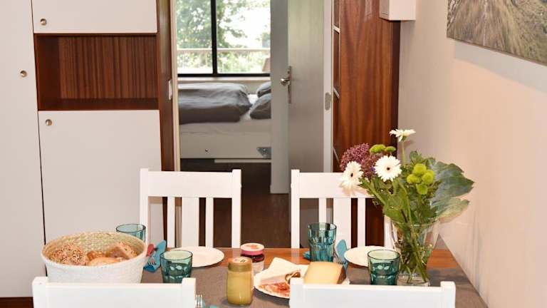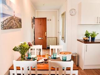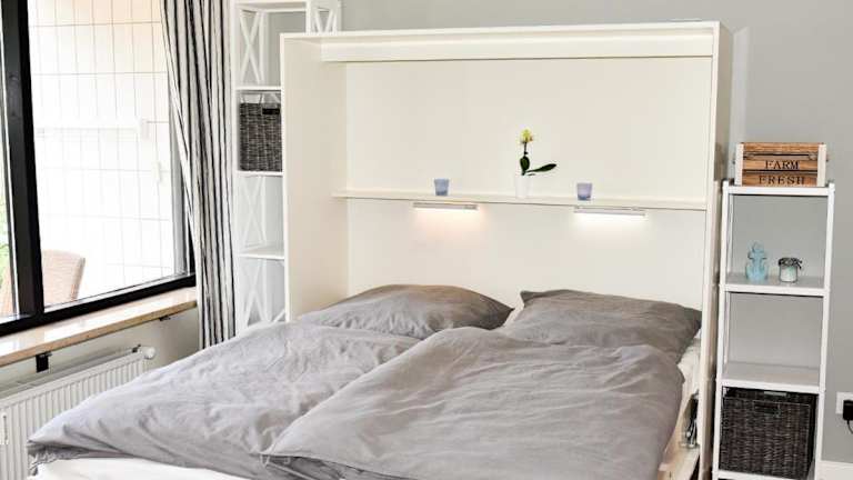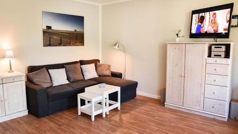 Die Ferienwohnung besteht aus einem Schlafzimmer, einem Wohnzimmer und einer voll ausgestatteten Küche mit Kühlschrank und Kaffeemaschine. Ein Badezimmer ist mit einer Dusche und einem Haartrockner ausgestattet. Zur Unterhaltung stehen ein TV mit Kabelkanälen und ein DVD-Player zur Verfügung.