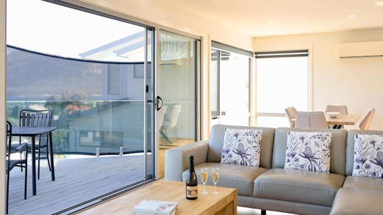 Deja Blue 2 - Freycinet ist ein Ferienhaus, das eine ruhige und komfortable Atmosphäre bietet. Die Unterkunft ist klimatisiert und beinhaltet eine Vielzahl an Annehmlichkeiten, darunter kostenlosen Privatparkplatz.