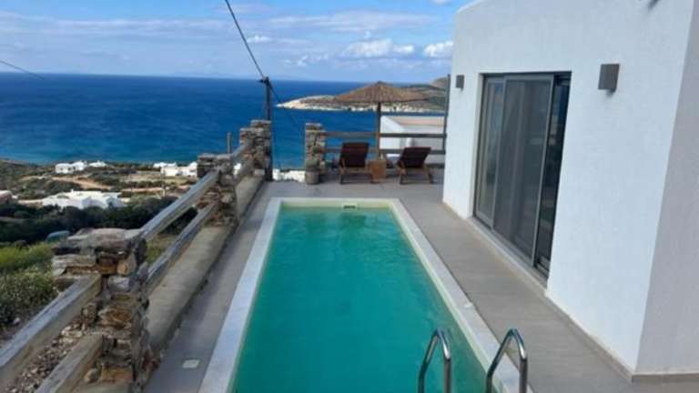 Die Deja blue Villa 2 ist eine wunderbare Unterkunft mit Meerblick, die sich perfekt für einen entspannten Urlaub eignet. Mit einer Terrasse und einem Balkon können Sie die atemberaubende Aussicht genießen. Der nahegelegene Strand Soros ist nur 2,9 km entfernt und auch Paralia Almira ist weniger als 1 km entfernt. Das Ferienhaus verfügt über 2 Schlafzimmer, ein gemütliches Wohnzimmer und eine voll ausgestattete Küche. Der saisonale Außenpool lädt zum Entspannen ein und kostenfreie Privatparkplätze sind ebenfalls vorhanden. Ein perfekter Ort, um die Schönheit von Paros zu entdecken.