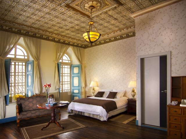 Die eleganten und komfortablen Zimmer im Del Parque Hotel & Suites befinden sich in der 3. Etage und sind im klassischen Kolonialstil eingerichtet. Jedes Zimmer verfügt über Sat-TV, ein privates Badezimmer mit kostenlosen Pflegeprodukten und einem Haartrockner sowie einen Schreibtisch. Alle Zimmer bieten einen atemberaubenden Blick auf den Calderón Park und die Kathedrale.