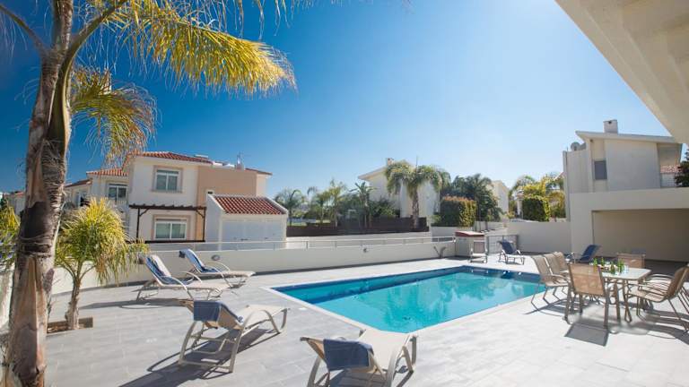 Die Delfini Villas in Protaras bieten Ihnen die ideale Unterkunft für einen erholsamen Urlaub. Mit einem Außenpool und kostenfreiem WLAN erwarten Sie hier alle Annehmlichkeiten für einen komfortablen Aufenthalt. Die Villen liegen in der Nähe von wunderschönen Stränden und bieten Ihnen einen eigenen Privatparkplatz. Genießen Sie den Pool- und Gartenblick von Ihrem Balkon aus und erkunden Sie die Umgebung mit ihren zahlreichen Sehenswürdigkeiten.