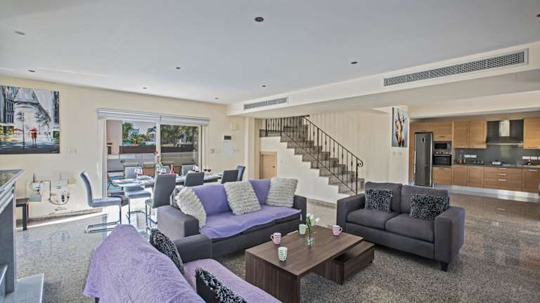 Die Delfini Villas befinden sich in einer günstigen Lage in Protaras. Der Sunrise Beach ist nur 1,9 km entfernt, der Konnos Beach 2,7 km und der Protaras-Strip nur 750 m. Innerhalb von 300 m erreichen Sie zudem einen kleinen Sandstrand. In der näheren Umgebung können Sie den National Forest Park Kavo Greko (3,5 km) und den Kalamies Beach (3,7 km) besuchen. Der Flughafen Larnaka ist etwa 42 km entfernt.