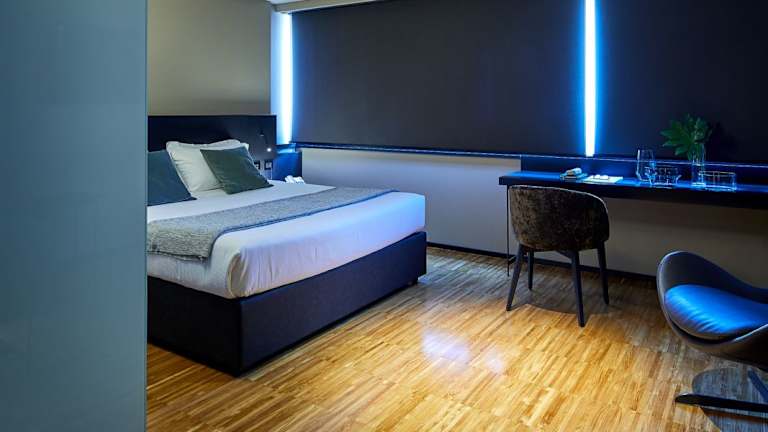 Die klimatisierten Zimmer im Delparco Hotel sind ausgestattet mit einem Schreibtisch, einem Safe, einem Flachbild-TV und einem eigenen Badezimmer mit einem Bidet. Jede Wohneinheit verfügt zudem über einen Kühlschrank.