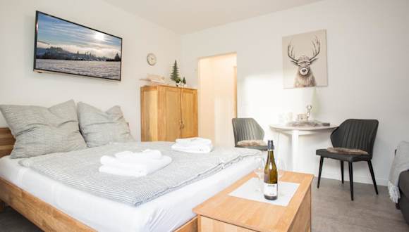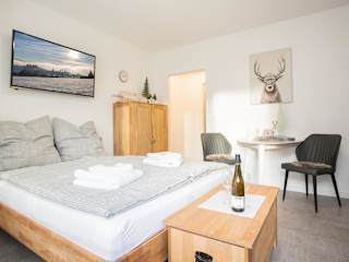 Deluxe Studio - City Center - 5 Min to Slopes - Am Kurpark - Free Parking bietet eine komfortable Ferienwohnung mit Balkon, kostenlosem Privatparkplatz und WLAN. Maßnahmen zur Gesundheits- und Hygienesicherung sind in der Einrichtung implementiert.