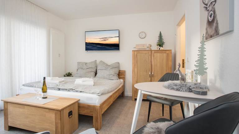 Das Studio umfasst ein Schlafzimmer, ein Badezimmer mit Dusche sowie eine gut ausgestattete Küche, die mit einem Kühlschrank und einem Ofen versehen ist. Zur Ausstattung gehören zudem ein Flachbild-TV mit Kabelkanälen sowie Handtücher und Bettwäsche. Die Unterkunft ist Nichtraucherbereich.
