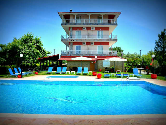 Entspannen Sie am Pool des Hotels Denis und genießen Sie die Sonne auf der blütengeschmückten Sonnenterrasse. In der Umgebung können Sie den wunderschönen Sandstrand von Korinós erkunden und sich im klaren Wasser erfrischen. Das Hotel bietet auch kostenlose Parkplätze für Autos und Motorräder, damit Sie die Umgebung bequem erkunden können.