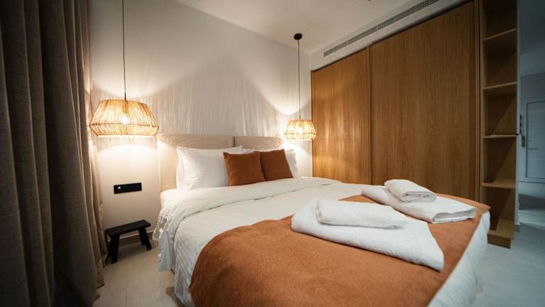 Deos- Luxury Apartment in Agrinio ist eine moderne Ferienwohnung, die mit Annehmlichkeiten wie einem Balkon und einer Terrasse ausgestattet ist, um einen angenehmen Aufenthalt zu gewährleisten.