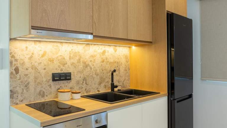Die Unterkunft bietet ein klimatisiertes Apartment mit einem separaten Schlafzimmer, einem Wohnzimmer, einer voll ausgestatteten Küche und einem Badezimmer. Ein Flachbild-TV ist ebenfalls vorhanden.