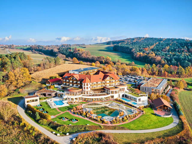 Wasserwelt mit ganzjährig beheiztem Außenpool - Solepool - Onsenbecken - Innenpool mit Wasserfall - Whirlpool - Bio Badesee - Finnische Sauna - Panoramasauna - Skysauna - Textilsauna - Dampfbad - Infrarotsitze - Eis Lounge - Tauchbecken - 7 verschiedene Themen Ruheräume - Grander Trinkbrunnen, Saftbar im Wellnessbereich - Fitnessstudio und Übungsraum. In der Beautyfarm können Sie sich mit Wellness- und Beautyanwendungen verwöhnen lassen.