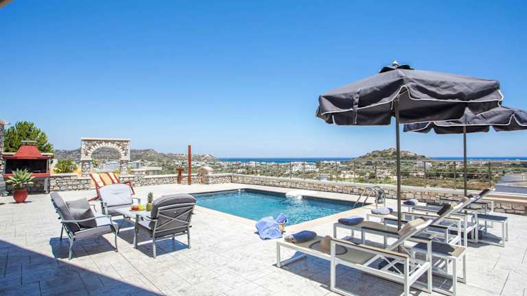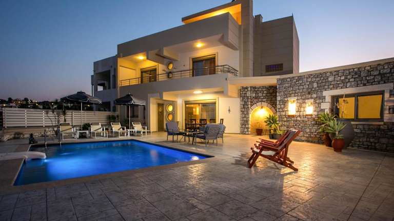 Die Villa besteht aus 5 Schlafzimmern, einem Wohnzimmer und 5 Badezimmern, die jeweils mit einem Bidet und einer Dusche ausgestattet sind. Zur weiteren Ausstattung gehören Klimaanlage, Kühlschrank, Kaffeemaschine sowie Handtücher und Bettwäsche.