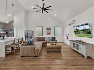 Das Ferienhaus verfügt über Klimaanlage, 3 Schlafzimmer, ein TV sowie eine Küche, die mit einem Kühlschrank und einem Geschirrspüler ausgestattet ist.