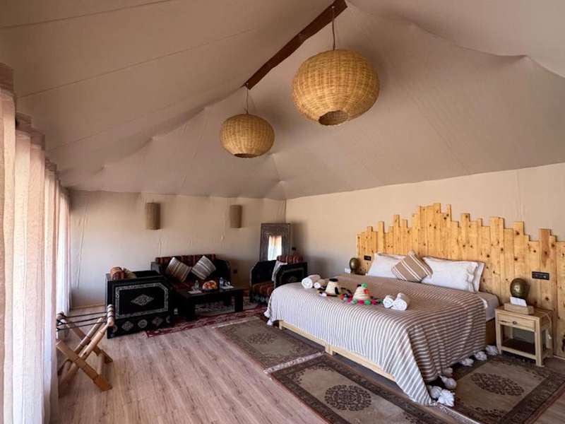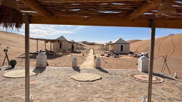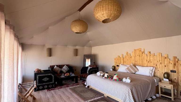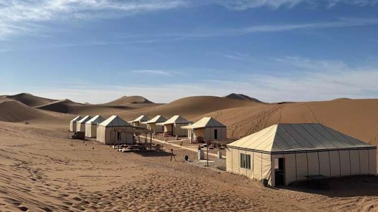 Desert Luxury Camp Erg Chigaga bietet eine einzigartige Übernachtungsmöglichkeit in der Wüste, kombiniert mit luxuriösem Komfort und naturnaher Atmosphäre.