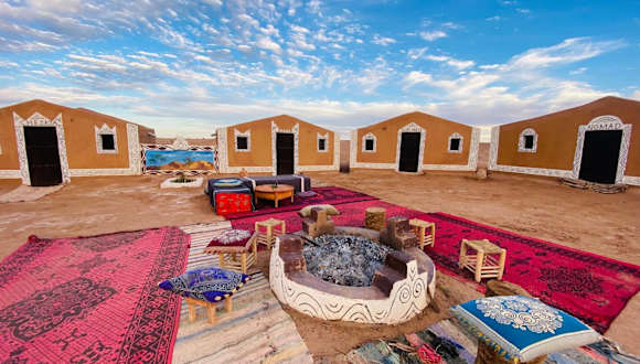 Erleben Sie einen unvergesslichen Aufenthalt im Desert Tours & Camp Chraika in M'hamid El Ghizlane. Das Hotel bietet eine beeindruckende Aussicht auf den Garten, einen malerischen Garten und eine gemütliche Terrasse. Genießen Sie köstliche vegetarische, vegane oder Halal-Frühstücke und entspannen Sie in den komfortablen Unterkünften. Nutzen Sie die kostenfreien Parkplätze und WLAN, und erkunden Sie die Umgebung mit dem Fahrrad oder einem Mietwagen. Für eine bequeme Anreise steht Ihnen ein Flughafentransfer zur Verfügung.