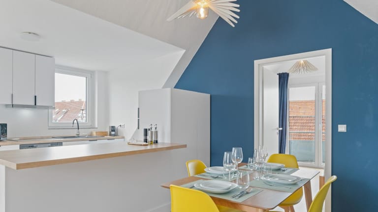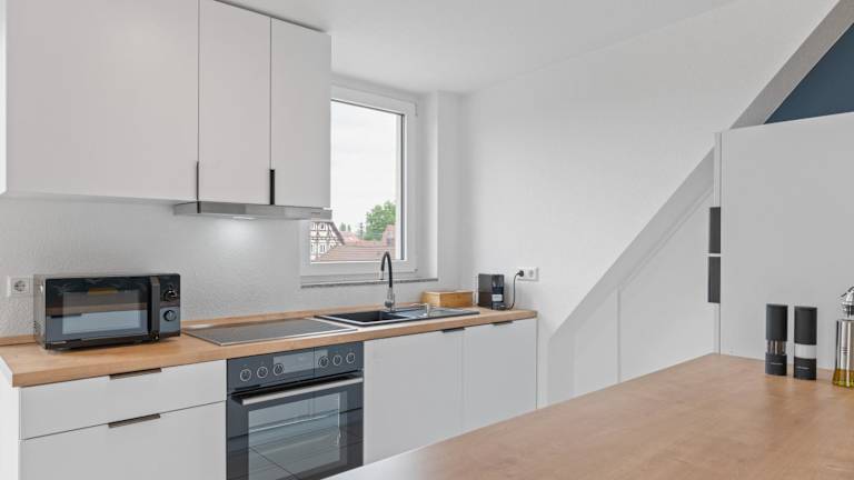 Das Design-Apartment - Küche - Balkon - Tiefgarage ist eine Ferienwohnung, die Übernachtungsmöglichkeiten mit kostenlosem WLAN bietet. Es stehen ein kostenloser Privatparkplatz und ein Balkon mit Stadtblick zur Verfügung.