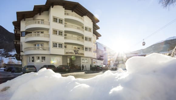 Wir erwarten Sie mit einem außerordentlich freundlichen Service für Ihren Winterurlaub in Sölden. GASTFREUNDSCHAFT wird bei uns groß geschrieben. Inklusivleistungen: - Begrüßungsgetränk inklusive Informationsgespräch bei Ihrer Ankunft für den idealen Start in den Urlaub - 1 Flasche Mineralwasser am Zimmer bei Ankunft - 48 hochmoderne Zimmer mit attraktiver Innenarchitektur, viel Stein und Holz und vorallem hochbequeme Boxspringbetten (bei Bedarf können die Betten auch auseinandergestellt werden) - Beste Lage nur 30 m von der Talstation der Gaislachkoglbahn entfernt. Genießen Sie die Vorteile eines autofreien Urlaubs - ¾ Pension: Reichhaltiges Buffetfrühstück von 7:30 bis 10:00, Nachmittagsjause (Tiroler Marend) von 15:00-16:30, 5 Gang Gourmet Wahlmenü - Gratis WLAN im gesamten Haus - Freie Benützung unseres Sauna- & Relaxbereichs: Finnische Sauna, Biosauna, Dampfbad und Infrarotkabine mit Tiefenwärme, Eisbrunnen, Handtücher, Sitz- & Liegebereich, Wasserbetten, Kaminfeuer, Wellness- & Vitalbüffet mit frischem Obst, Trockenfrüchte, Tee & Säfte. Achtung: Kinder können erst mit 14 Jahren und in Begleitung eines Erwachsenen diesen Bereich des Hotels betreten - Wellnesstasche inklusive flauschiger Bademantel und Badeslipper leihweise für die Dauer Ihres Aufenthalts - Kostenloser Parkplatz vor dem Hotel oder auf unsere reservierten Parkplätze in der Gaislachkoglgarage (wenige Meter vom Hotel entfernt) - Kaufen Sie Ihre Skipässe direkt an der Kasser der Gaislachkoglbahn 30m vom Hotel Valentin. - Ski- & Boardverleih, Service & professionelle Beratung direkt im Hotel in Zusammenarbeit mit unserem Partner Intersport Glanzer. Sichern Sie sich schon jetzt 15,0% Rabatt und reservieren Sie Ihr Equipment online unter www.glanzer.at. Vor Ort erhalten Sie als unsere Gäste 10,0% Rabatt auf Sportartikelverleih. Kostenloses Ski- & Boardepot in allen "Glanzer" Filialien rund um Sölden - Entdecken Sie das Ötztal mit gratis Busverbindungen direkt vor dem Hotel. Unsere Mitarbeiter informieren Sie gerne - Kleines Abschiedsgeschenk damit wir Ihnen auch auf den Heimweg in guter Erinnerung bleiben. - Frühabreiser erhalten selbstverständlich ein Lunchpaket für unterwegs