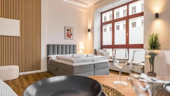 Die Design Studio zentral Küche parknah ist eine Ferienwohnung, die modernes Wohnen mit praktischen Annehmlichkeiten kombiniert. Es handelt sich um eine Nichtraucherunterkunft, die gut ausgestattete Räume und kostenlose WLAN-Verfügbarkeit in allen Bereichen bietet. Die Unterkunft ist zudem mit einem Erste-Hilfe-Kasten ausgestattet. Zahlungsmodalitäten beinhalten eine erforderliche Überweisung vor der Anreise.