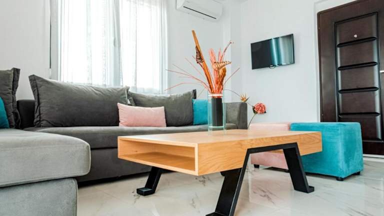 Die Design Suites Efharis (Brusco) in Néa Péramos bieten eine moderne und komfortable Unterkunft mit einem schönen Garten und einer Terrasse. Das kostenfreie WLAN und der atemberaubende Stadtblick machen den Aufenthalt noch angenehmer. Das klimatisierte Apartment verfügt über 2 Schlafzimmer, ein geräumiges Wohnzimmer und eine voll ausgestattete Küche. Handtücher und Bettwäsche werden gestellt, und ein Balkon bietet einen wunderschönen Blick auf die Berge. Die Nähe zum Strand Nea Peramos Kavalas und zum Strand Ammolofoi macht diese Unterkunft zum idealen Ausgangspunkt für einen erholsamen Urlaub.