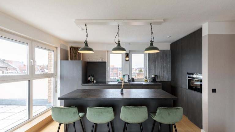 Das Designer Penthouse in St Johannes bietet klimatisierte Übernachtungsmöglichkeiten mit einem Balkon und kostenlosem WLAN. Die Ferienwohnung verfügt über eine Terrasse und bietet einen Blick über die Dächer Nürnbergs.
