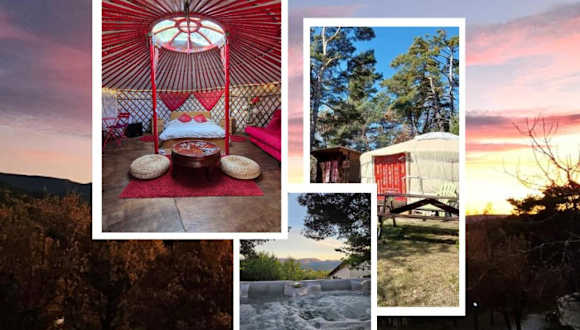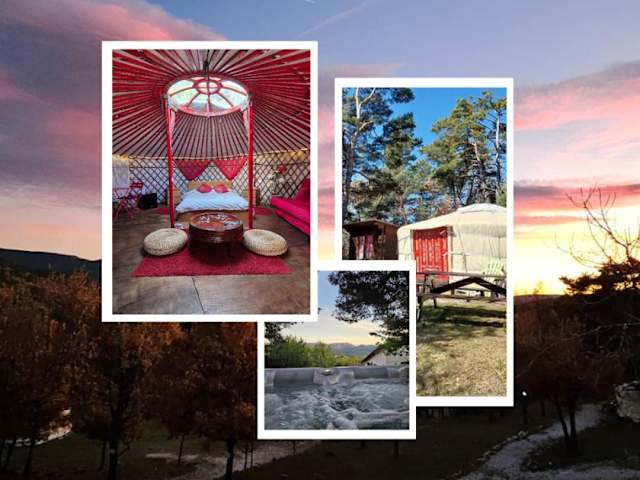 Das Destination Ailleurs bietet eine einzigartige Unterkunftserfahrung in einer Jurte in Castellane. Genießen Sie hausgemachte Mahlzeiten auf Anfrage und erleben Sie den Komfort eines eigenen Badezimmers. Die Unterkunft bietet zudem einen Whirlpool, einen Garten und eine Terrasse, sowie Aktivitäten wie Radfahren, Angeln und Wandern in der Umgebung.