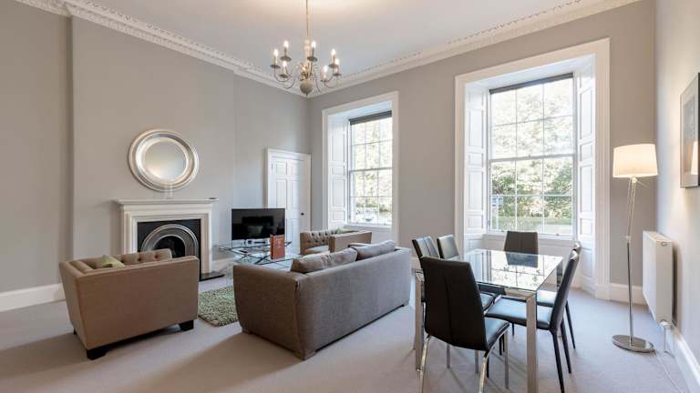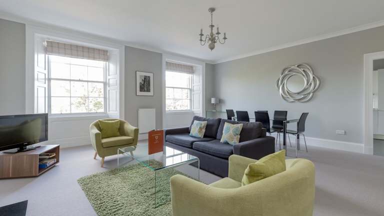 Die Apartments sind modern eingerichtet und bieten Ausblick auf die Queen Street Gardens. Zur Ausstattung gehören ein großzügiges Wohnzimmer mit einem Doppelschlafsofa, ein Essbereich sowie eine separate Küche. Bei Aufenthalten von mehr als 7 Nächten erfolgt eine wöchentliche Reinigung der Apartments. In einigen Apartments sind gegen einen Aufpreis von GBP 15 pro Nacht Zustellbetten verfügbar.