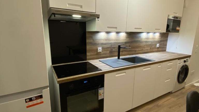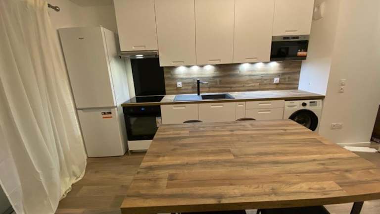 Es stehen Optionen zur Lebensmittellieferung zur Verfügung, die gegen Aufpreis in Anspruch genommen werden können. Es handelt sich um eine voll ausgestattete Küche in der Wohnung.