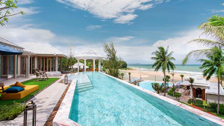 Nestled between a freshwater lagoon and golden sand beach, Devasom Khao Lak Beach Resort & Villas is perfectly positioned to savour spectacular views of the Andaman Sea. With a name derived from the Sanskrit to mean ‘Angels Residence’ the resort is based on the art of an ancient civilization that once resided in this charmed spot set amidst three hectares of verdant grounds. Select from an enticing array of exquisite accommodations including pools, suites and beachfront villas featuring large private balconies and spellbinding views. Amenities include two restaurants, a spa, wine cellar and a kids club. The resort features a spectacular saltwater swimming pool with a panoramic beachfront view and spa jets plus a kid’s pool to keep the little ones entertained. Watersport activities include kayaking, paddle boarding and a well-stocked library to lounge in. The local town is accessible by complimentary shuttle bus offered by the resort.