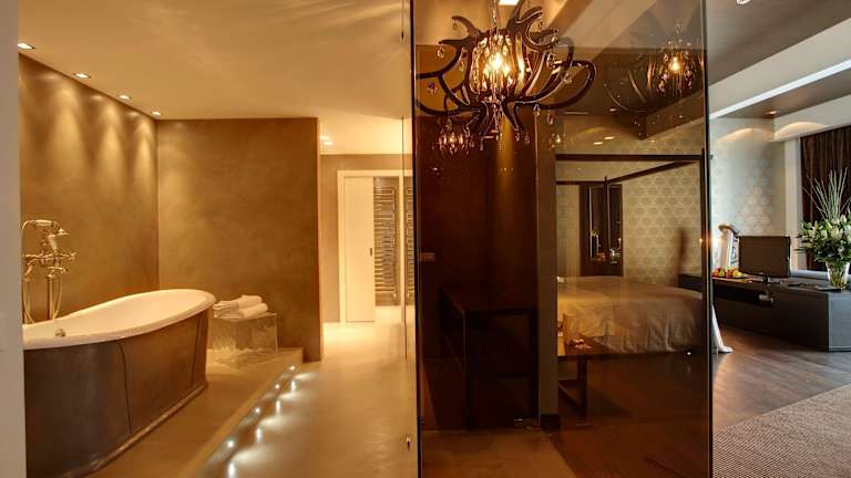 Die Zimmer und Suiten im Devero Hotel sind geräumig und klimatisiert. Sie verfügen über komfortable Betten und bieten teilweise einen Panoramablick auf die Umgebung. Einige der Suiten verfügen sogar über ein Badezimmer mit einem türkischen Bad. Die stilvolle Einrichtung sorgt für ein luxuriöses Ambiente und lädt zum Entspannen ein.