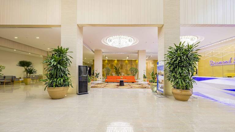 Das Diamond Bay Hotel in Nha Trang bietet seinen Gästen eine ideale Lage in der Nähe der Küste und der wichtigsten Sehenswürdigkeiten. Genießen Sie entspannte Tage am Außenpool und wählen Sie aus einer Vielzahl von internationalen und lokalen Gerichten in den Restaurants. Das Hotel bietet auch Karaoke-Zimmer, ein Fitnesscenter und verschiedene Geschäfte. Das zweisprachige Personal steht Ihnen rund um die Uhr zur Verfügung.